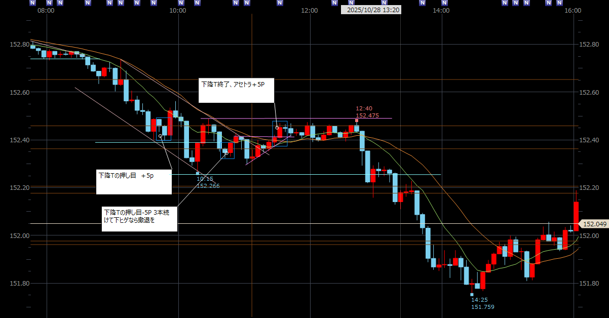 仕事終えてからマルチタイムフレーム分析の復習。1時間足でダウ理論でトレンドをつかみ、5分足でダウ理論に基づきライントレードをする。1分足はタイミングをはかるために見る。これでいこうと思う。