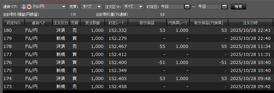 今日の収支 +110円