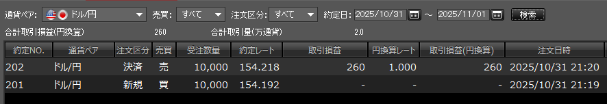 スポンサーリンク 【FXノート】2025年10月31日 デイトレノート 2025.11.01 スポンサーリンク 東京時間 仕事のためエントリーなし 欧州・米国時間 ライントレードをあざ笑うかのような嫌な動き。高値ブレイクかと思えば叩き落とす。4時間半待って一度のエントリーで手じまい。 トレード収支 今日の収支 +260円 2025年10月の収支 -915円 生涯損益(2025年10月~)-915 円 【FXノート】2025年10月30日 コメント ホームデイトレノート スポンサーリンク スポンサーリンク
