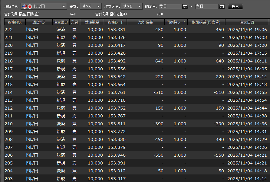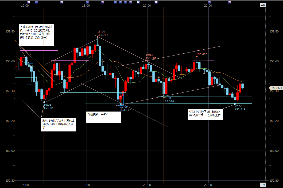 上位足と下位足の方向が一致しないので待機。欧州・米国時間は3戦3勝。