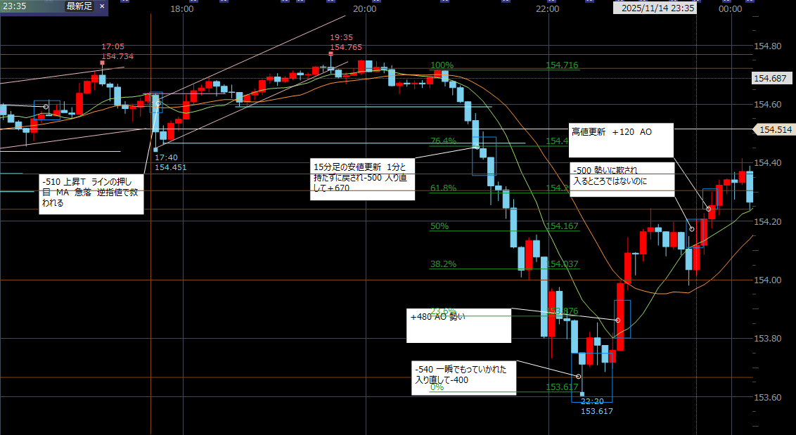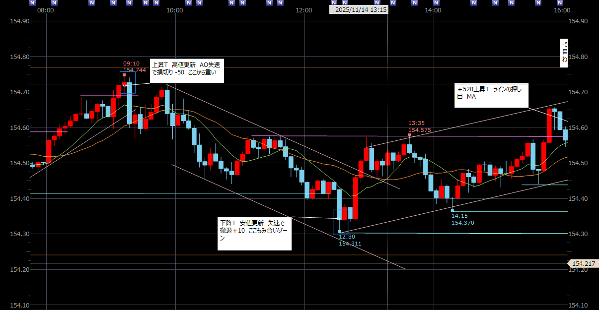 値幅は40銭と狭いがラインが引けたので押し目でトレード。