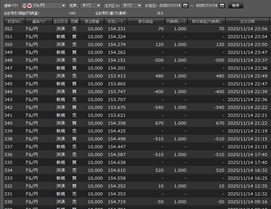 21時以降は世界的な株安を背景とするリスクオフらしい。高値、安値付近で固執するといい結果は出ない。