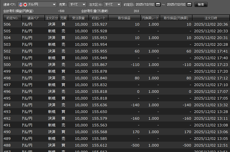 スポンサーリンク 【FXノート】2025年12月2日 デイトレノート 2025.12.03 スポンサーリンク 東京時間 欧州・米国時間 トレード収支 今日の収支 -580円 2025年11月の収支 +70円 生涯損益(2025年10月~)-2,380円 【FXノート】2025年12月1日 【FXノート】2025年12月3日 コメント ホームデイトレノート スポンサーリンク スポンサーリンク