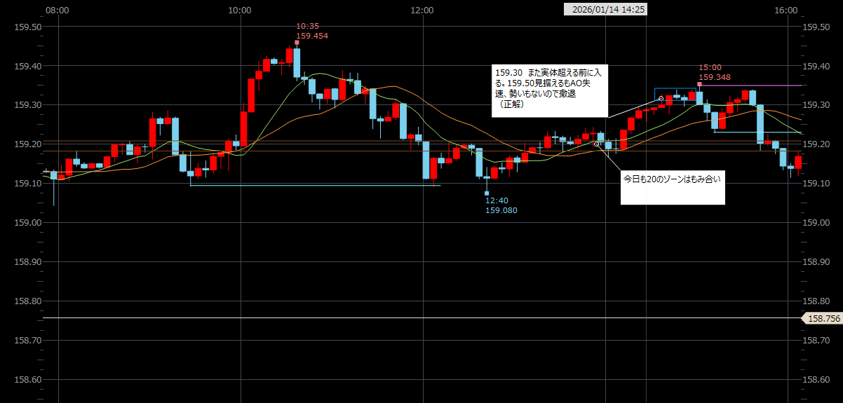 【FXノート】2026年1月14日 デイトレノート 2026.01.15 東京時間 1時間足が上向きなので売りでは入れず。 欧州・米国時間 トレード収支 今日の収支 +40円 2026年1月の収支 +1,150円 2026年の収支 +1,110円 生涯損益(2025年10月~)-6,595円 【FXノート】2026年1月13日 【FXノート】2026年1月15日 コメント ホームデイトレノート