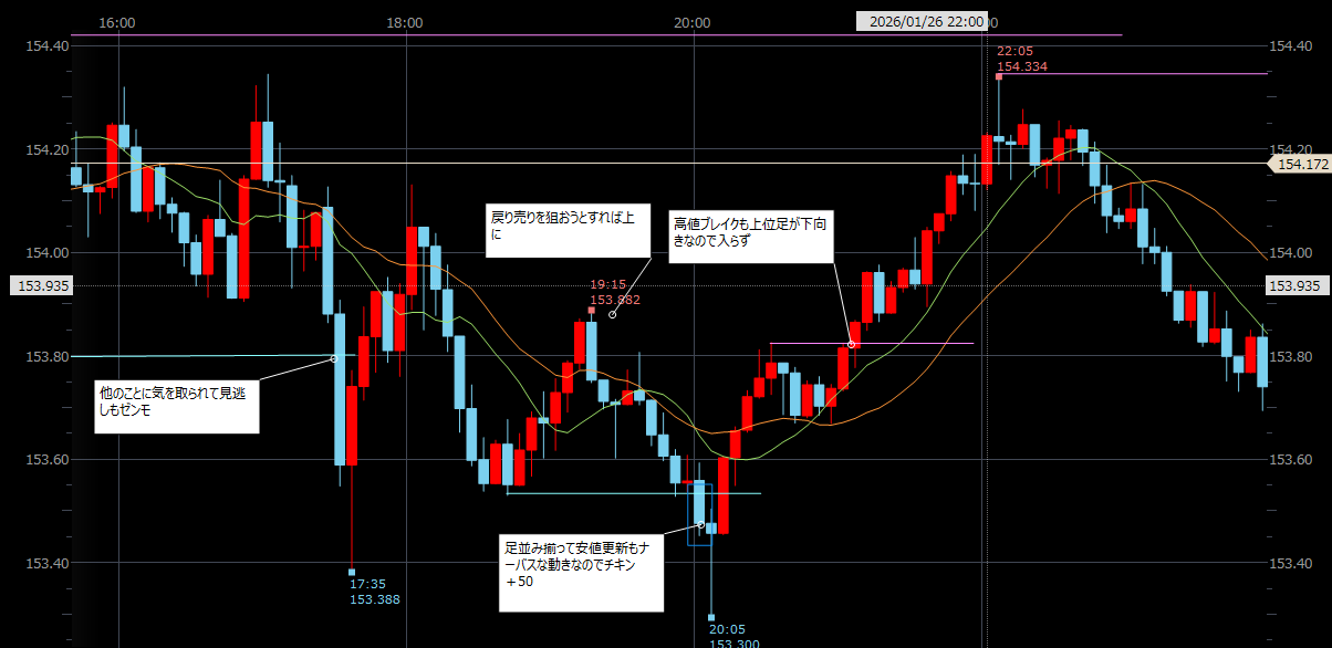 12時以降は値幅60銭。動きはあるがトレンドフォローはできない相場。