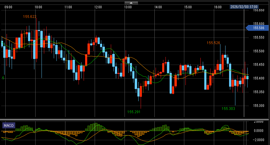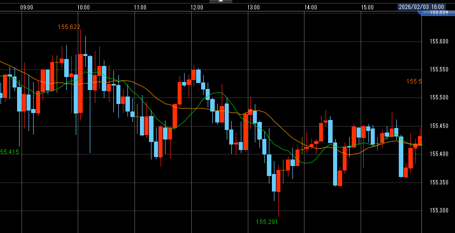 値幅30銭のレンジ。1時間足はずっと横、15分足は足の長いのが目立つ。楽天FXから外為どっとコムに変えて入金が遅れたので静観。