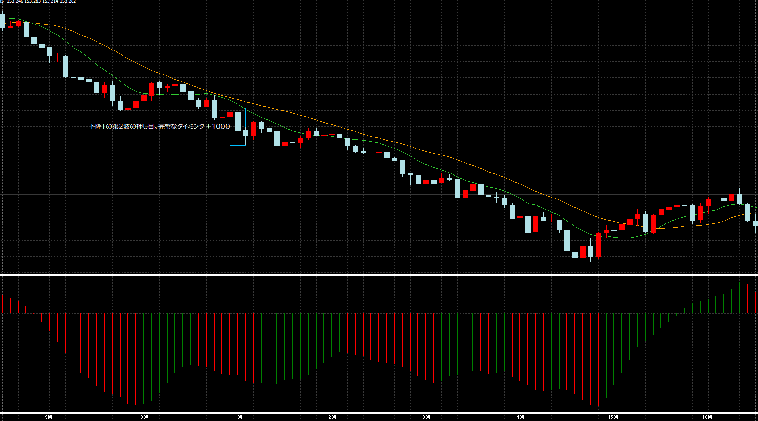 東京市場は休場も、選挙後は下降T継続で足並み揃っているのでエントリー。完璧なタイミングで1,000円利確。仕事優先なので離した。